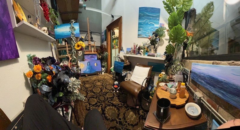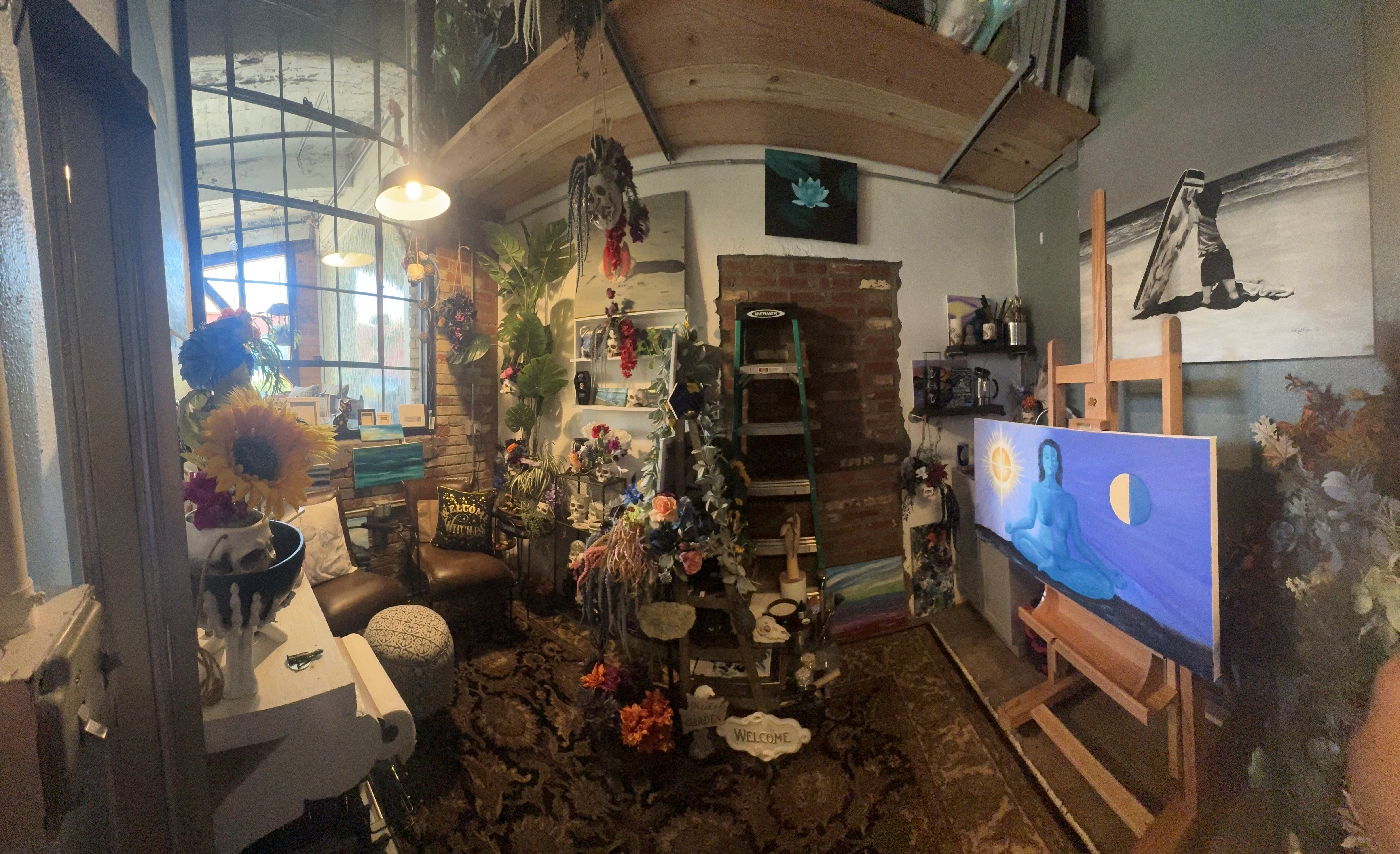 Kathryn loves sharing her space and her work with others. She welcomes visitors by appointment or invites you to stop by when the studio is open—though its hours are delightfully unpredictable, just like the creative process itself. Prepare to be captivated by the artistry, ambiance, and magic of Kathryn Denham Art.