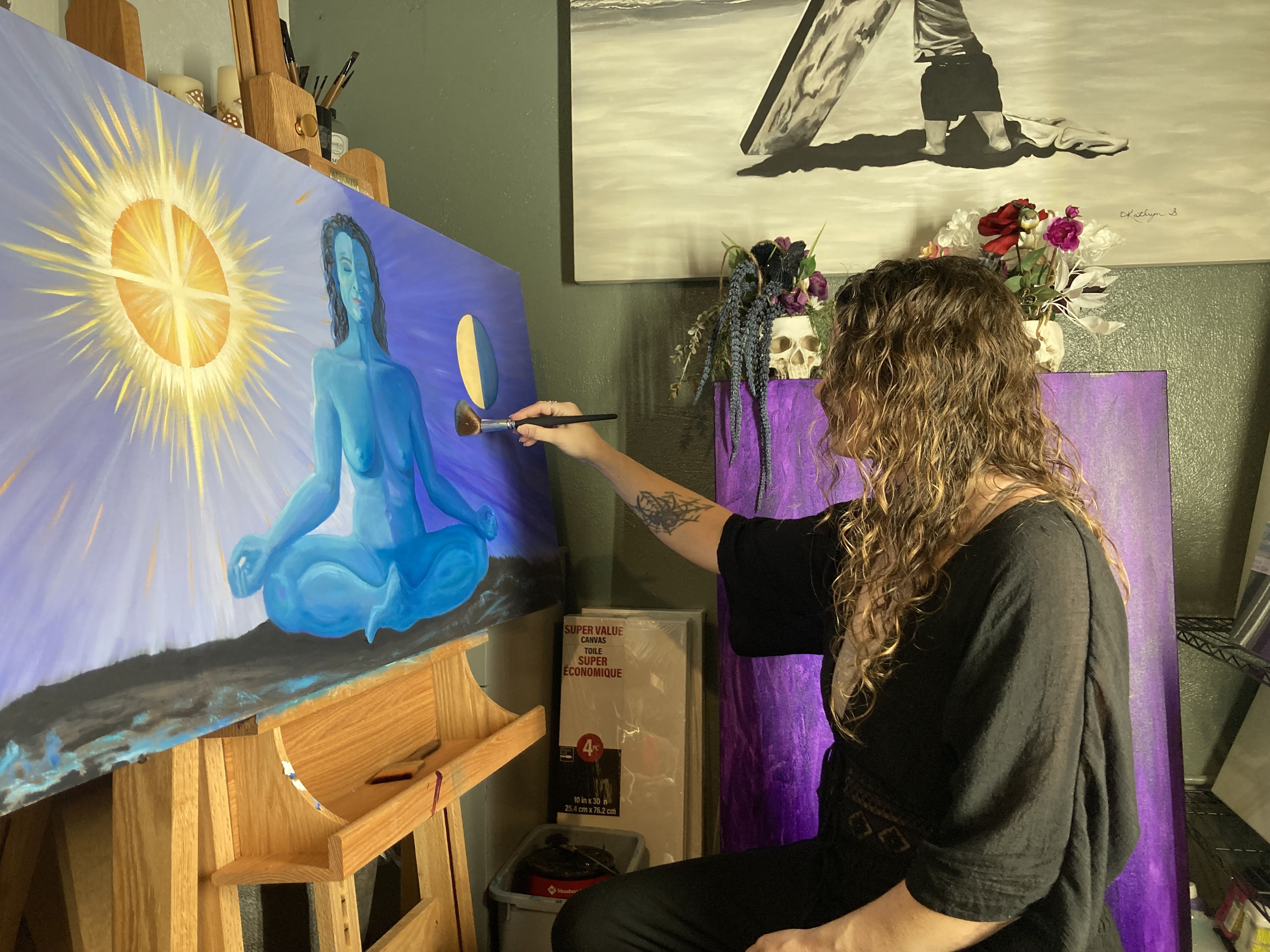 Step into the spellbinding world of Kathryn Denham Art, a studio that feels like a magical crossroads of creativity and wonder. Kathryn’s space is a delightful blend of inspiration and enchantment, resembling a place where an alchemist’s library meets a witch’s kitchen, infused with the comforting charm of an herbal tea shop.