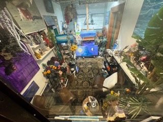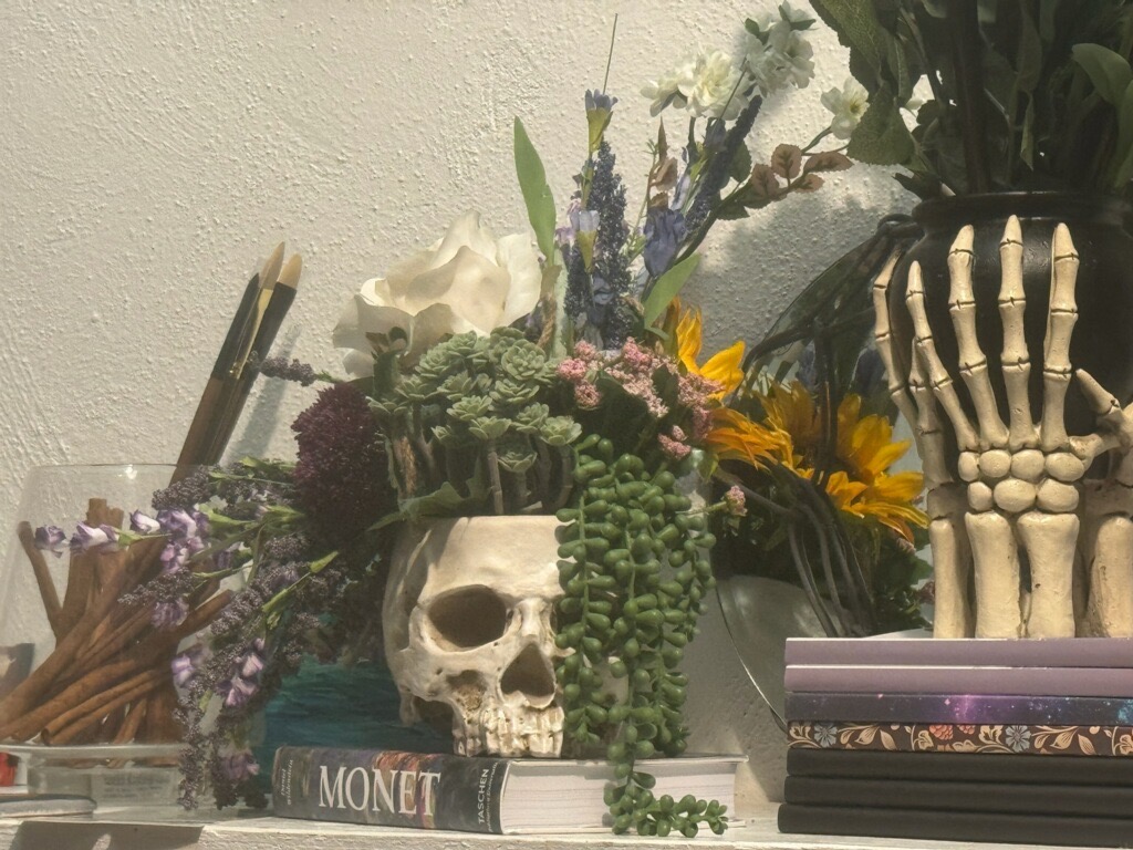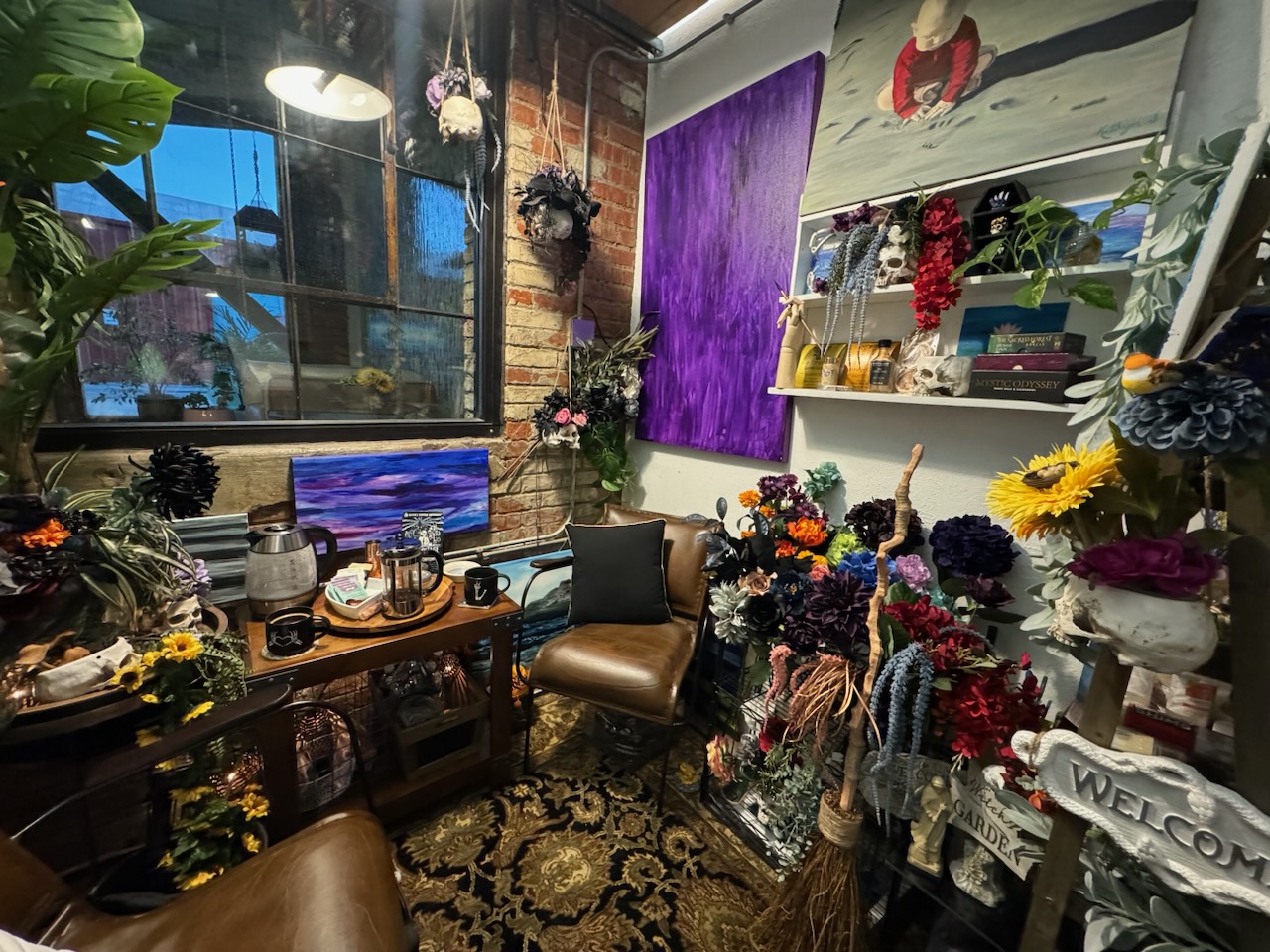Every corner of Kathryn’s studio is brimming with fascination. Hanging copper and skull planters. Her signature skull pots cascade from the walls, surrounded by objects that spark the imagination. Amid this artistic sanctuary, Kathryn has created a welcoming space for visitors to sit and enjoy a carefully brewed tea or coffee, adding to the warm, magical atmosphere.